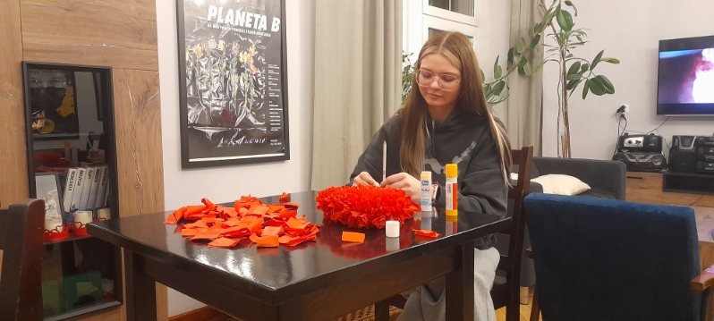 Walentynkowe zajęcia artystyczne upłynęły pod znakiem czerwieni… i dużych pokładów cierpliwości. Z okazji zbliżających się walentynek uczestniczki podjęły wyzwanie stworzenia przestrzennych serc, łącząc surową tekturę z delikatnością bibuły.